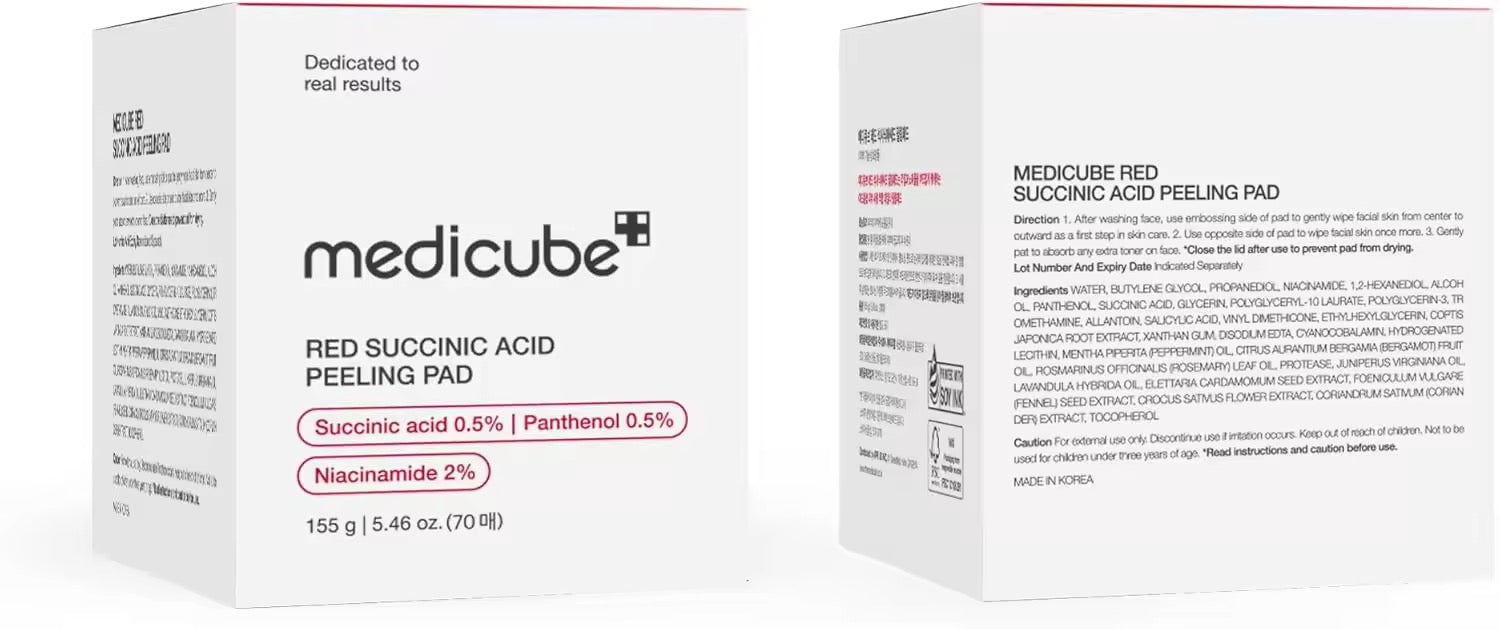 Wholesale Customized Korean Skincare Medicube Red Succinic Acid Toner Exfoliating Cotton Pads Niacinamide AHA BHA Acne Relief